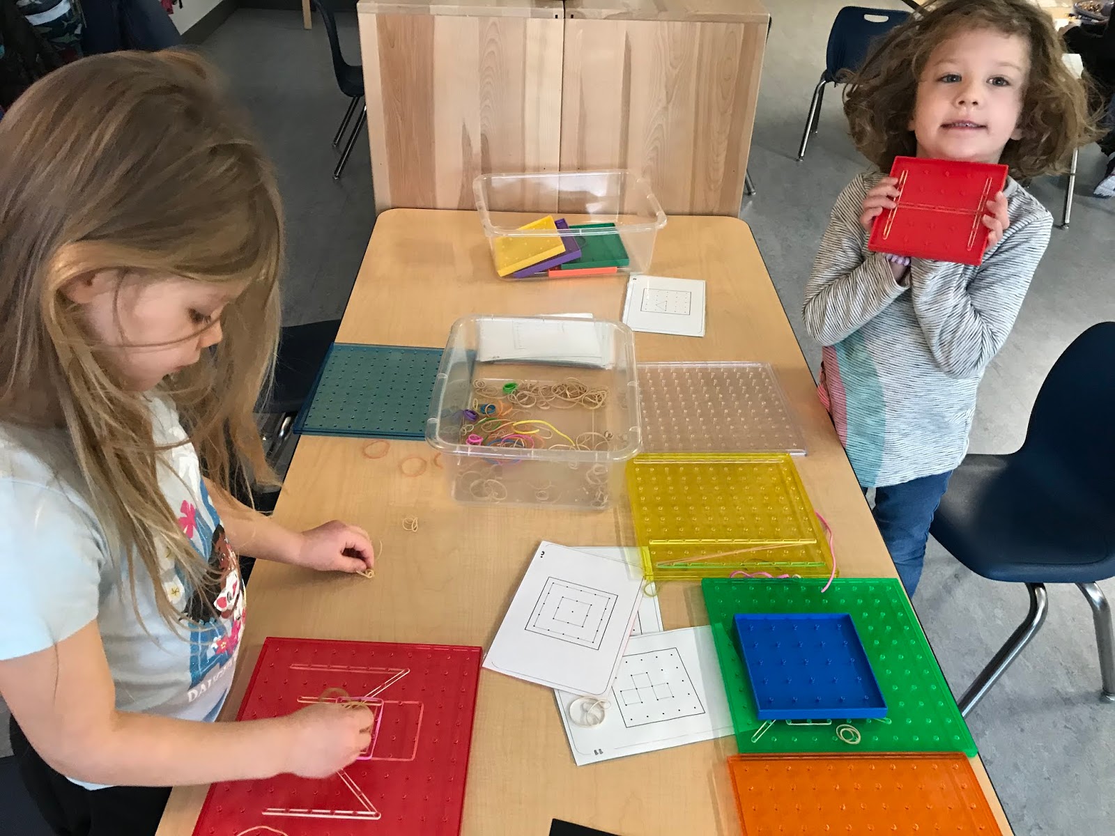 Welcome back after a long weekend, kinders. Students enjoyed signing in by finding their name on the attendance rock. After our community circle of sharing our emotions we headed off to new learning tables. This week, students will be working on representing numbers 1-5. Students will subitize, represent with manipulatives on a five frame, print the numeral and show how many fingers. Students are continuing their work on 2 and 3 element patterns. Geoboards were a big hit. Students are working on making basic shapes, letters and numbers using elastics and geoboards. At our writing table, students worked on drawing healthy foods and using their knowledge of letters and sounds to label their pictures with initial letter sounds. WOW!!! Impressive steps towards beginning the writing process.